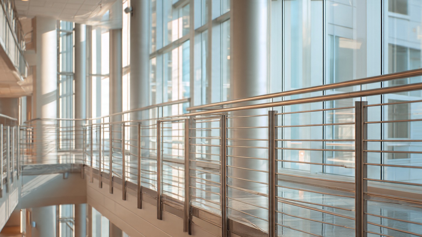 A commercial office project incorporated stainless steel eleogant tube railings and support beams. The result: