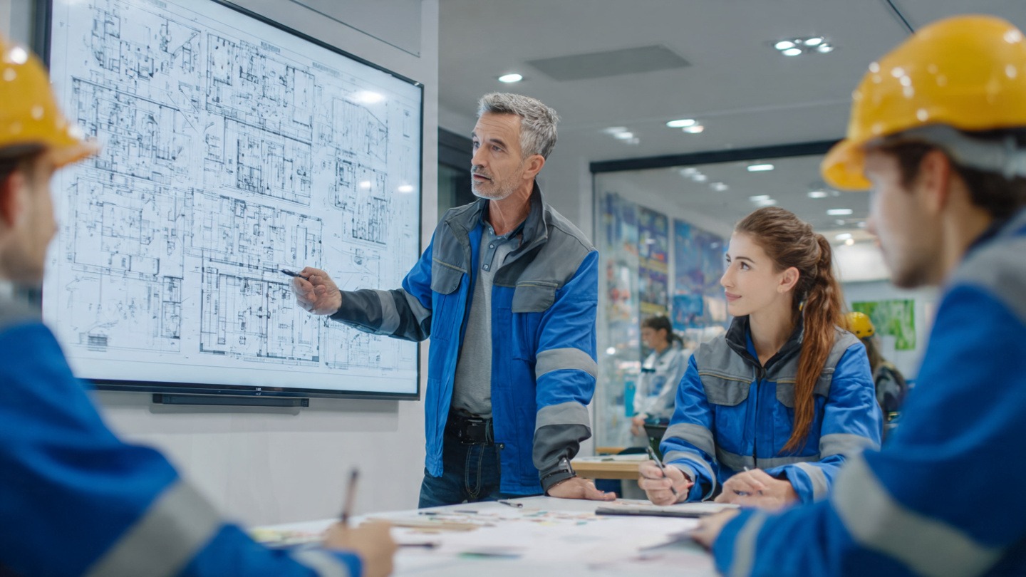 - Image: Students in vocational training practicing safety procedures