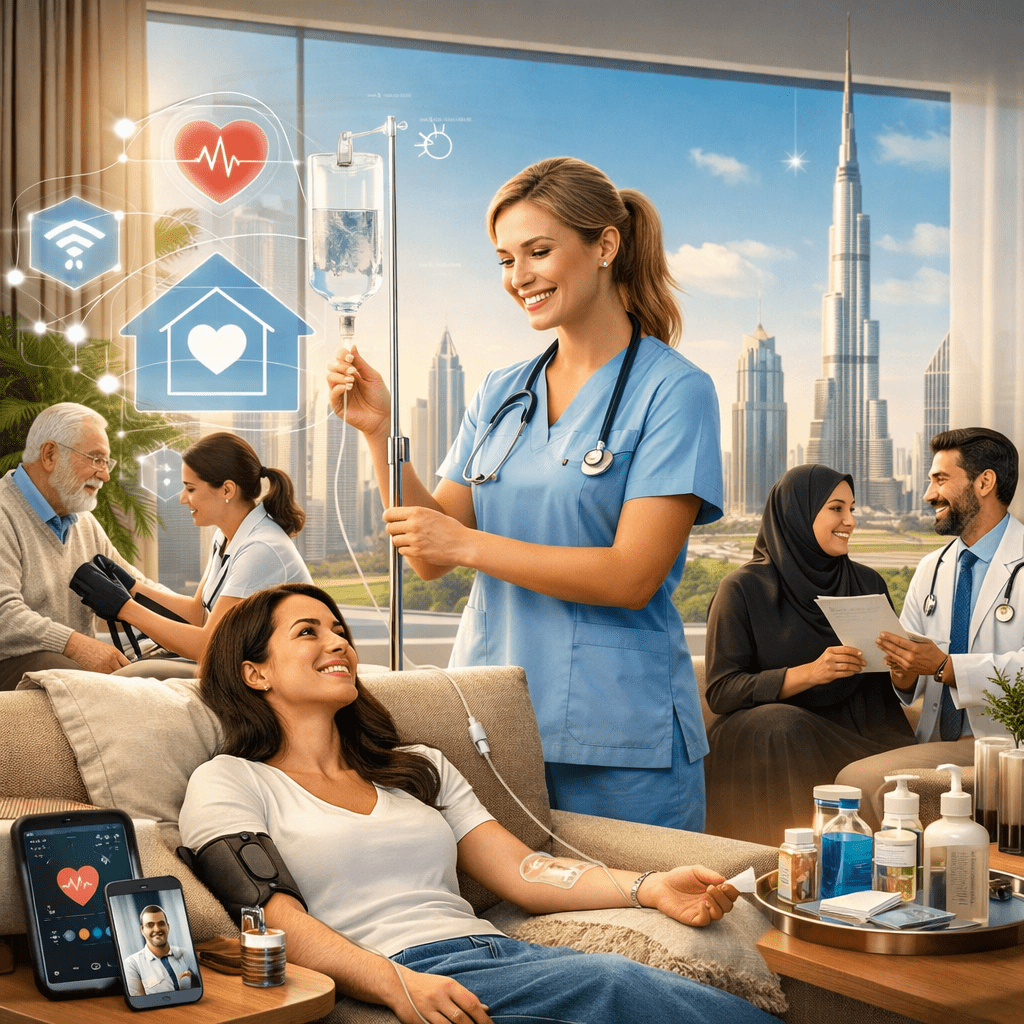 Home-based medical support aligns perfectly with Dubai’s fast-paced yet quality-focused lifestyle.