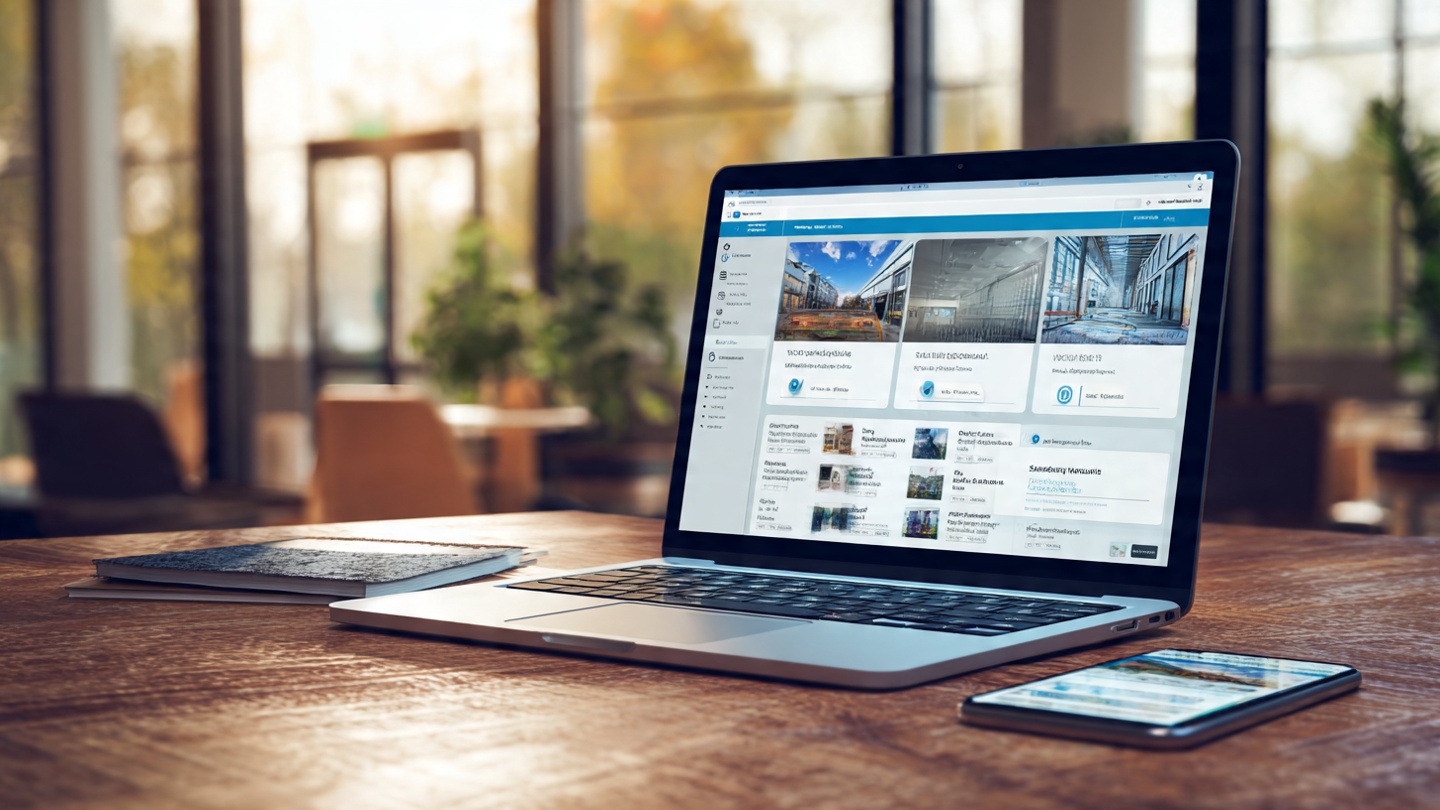 - Illustration: Mobile and desktop dashboard interface of an online platform.